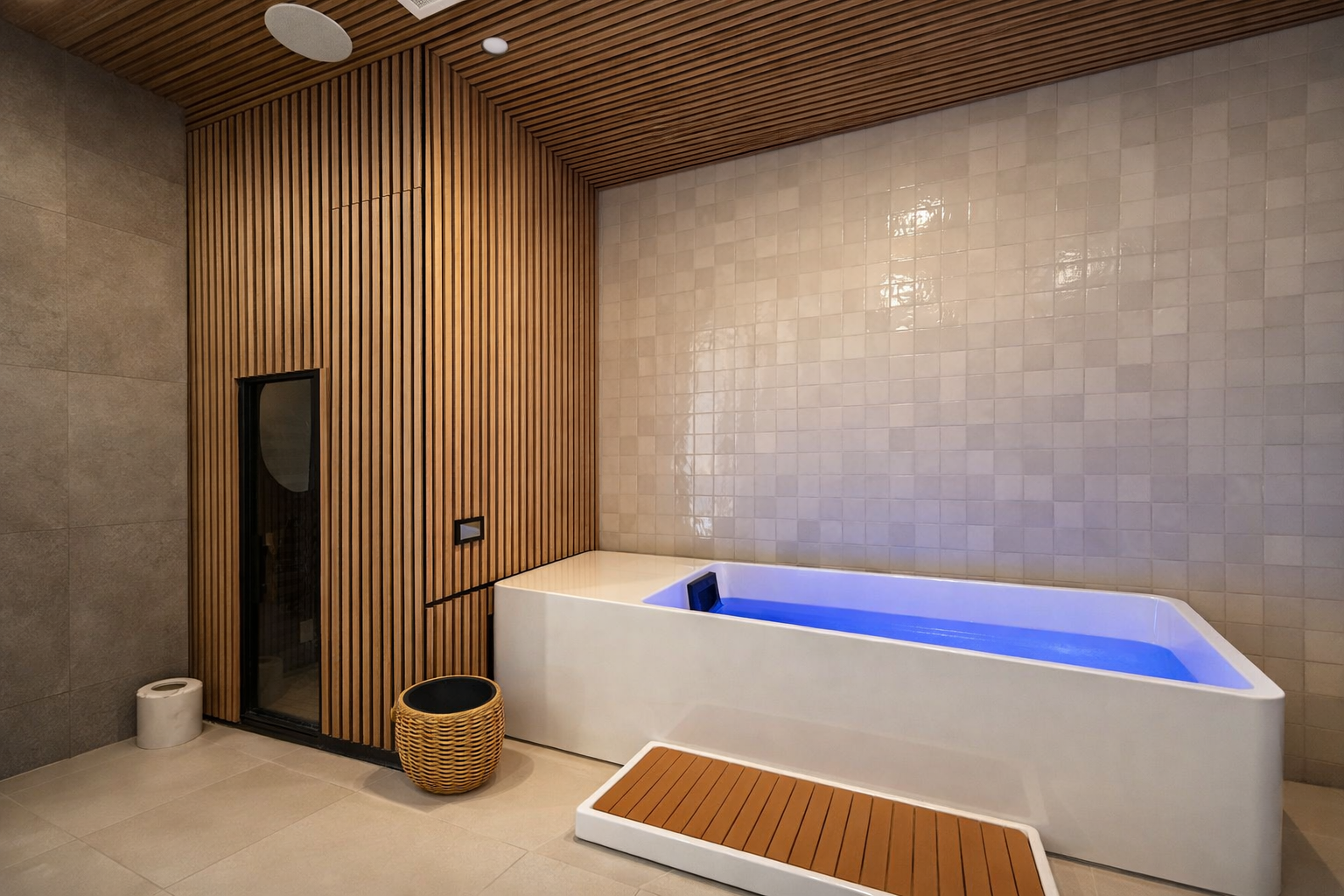 The perfect addition to your wellness routine, our Recovery Lounge features a state-of-the-art cold plunge (12°C), infrared sauna, and waterfall shower — all within a private, elevated space that can be enjoyed solo or shared with a guest.